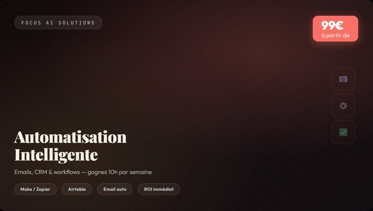 Proposé par FOCUS_AI_SOLUTIONS •EXPERT CREATION WEB ET IA , LANDING PAGES, CHATBOTS, AUTOMATISATION Vente au total 0