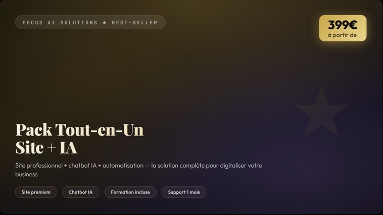 Proposé par FOCUS_AI_SOLUTIONS •EXPERT CREATION WEB ET IA , LANDING PAGES, CHATBOTS, AUTOMATISATION Vente au total 0
