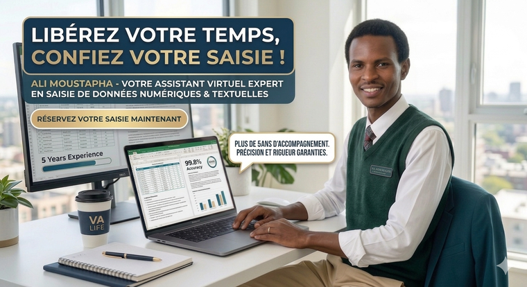 Je suis Ali, votre assistant virtuell stratégique. Avec plus de 5 ans d'expertise, j'accompagne les entrepreneurs et les entreprises dans la structuration et la valorisation de leurs données. Mon objectif est simple : transformer vos documents bruts en outils de travail impeccables et prêts à l’emploi.
