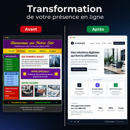 Un code source propre, un design professionnel, un déploiement en quelques minutes. Vous êtes propriétaire de votre site à 100%.