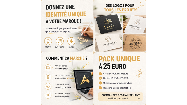 Mon objectif est simple : vous livrer un logo propre, utilisable immédiatement, et vous offrir une expérience rapide et agréable.Si vous avez une idée précise, je la suis.