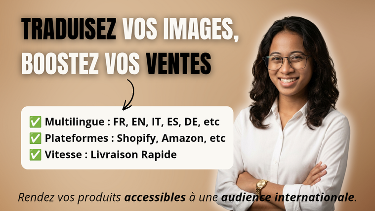 Je vais traduire et adapter visuellement vos images produits en toutes langues