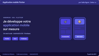 Développeur Full Stack & Mobile basé à Dakar, je conçois des sites web professionnels, des applications Laravel/PHP et des apps mobiles Flutter. Titulaire d'un Bac+3 en développement web (Université de Bambey) et certifié en Flutter (Xarala Academy) et Marketing Digital (Mastercard Foundation). Anciennement Conseiller Digital chez Orange, je sais aussi bien coder que communiquer avec les clients. Disponible pour vos projets freelance, je livre un travail propre, dans les délais.