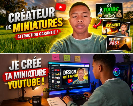 Vous cherchez à augmenter vos vues et attirer plus de clics ? Je vous propose un service de création de miniatures YouTube impactantes, uniques et optimisées pour le clic (CTR).