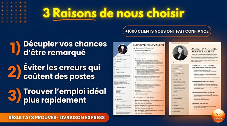 Je vais rédiger votre CV professionnel et votre lettre de motivation pour décrocher votre emploi de rêve