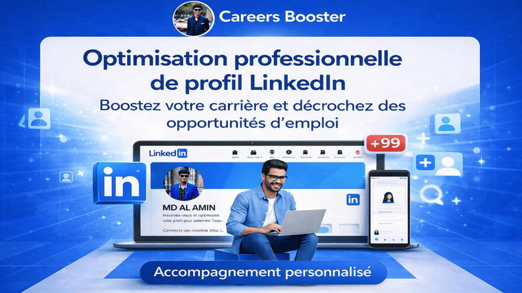 💼 Vous cherchez un expert fiable pour booster votre visibilité ou décrocher un emploi rapidement ? Vous êtes au bon endroit. J’accompagne entrepreneurs, freelances et professionnels à : ✔️ Attirer plus de clients grâce au marketing digital ✔️ Obtenir des entretiens avec des CV optimisés ATS ✔️ Développer des réseaux sociaux performants et rentables 📊 Résultats obtenus : 📈 +700 CV professionnels optimisés (ATS-friendly) 📈 +250 profils LinkedIn améliorés 📈 Jusqu’à +300% de croissance sur les réseaux sociaux 📈 +400 campagnes publicitaires lancées (Facebook Ads / Google Ads) 📈 +90% de clients satisfaits 🎯 Mes services : ¤ Création & optimisation de CV professionnels (ATS) ¤ Optimisation de profil LinkedIn ¤ Gestion & croissance des réseaux sociaux ¤ Publicité en ligne (Facebook Ads, Google Ads) ¤ Rédaction de contenu & copywriting ¤ Saisie de données & support administratif ⭐ Pourquoi me choisir ? ✅ Livraison rapide & respect des délais ✅ Communication fluide et professionnelle ✅ Approche orientée résultats (ROI) ✅ Solutions sur mesure adaptées à votre objectif 💬 “Service rapide, professionnel et efficace — résultats visibles dès les premiers jours !” 📩 Contactez-moi dès maintenant ou passez commande
