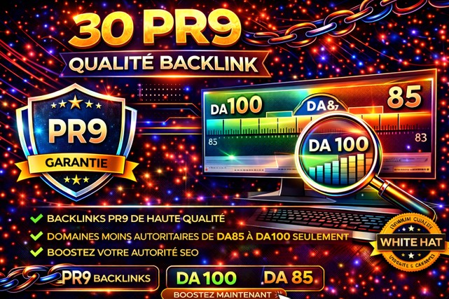 Je vais créer 30 Pr9 permanents SEO backlinks Qualité Backlink DA 100 à DA 85