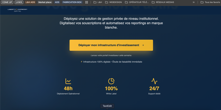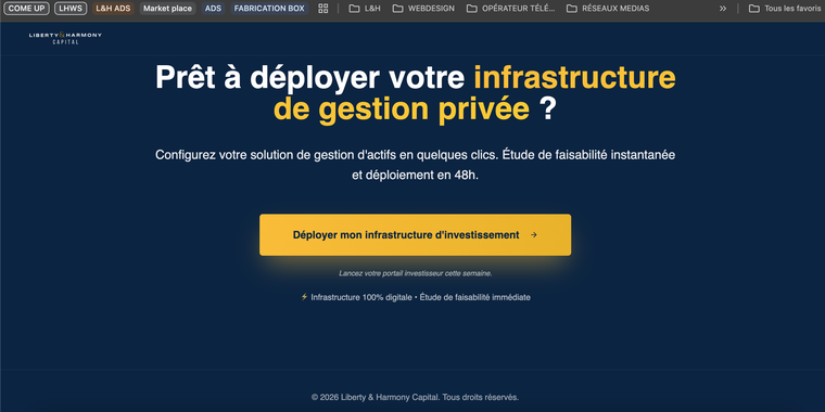 🎯 LHWS – ON TRANSFORME VOTRE IDÉE EN UN SITE RENTABLE. 🚀 VOUS AVEZ UNE VISION ? NOUS AVONS LA STRUCTURE POUR LA RÉALISER. Vous cherchez plus qu'un simple prestataire ? Vous voulez un partenaire qui comprend la réalité du business en ligne. Chez LHWS, nous transformons votre idée, votre intuition, en une réalité tangible, rapide et rentable. 🌐 NOTRE PREUVE EST NOTRE RÉSEAU : NOUS OPÉRONS CE QUE NOUS VENDONS. C'est notre différence fondamentale. Le Groupe L&H possède et gère en propre un réseau de sites e-commerce et de marketplaces actifs et générateurs de revenus. 🔍 Voyez par vous-même l'étendue de notre parc d'actifs : **assets.liberty-harmony.com/pages/our-sites ** Marketplace, portail EdTech... nous ne faisons pas de suppositions. Nous déployons pour votre projet les mêmes standards d'excellence, les mêmes thèmes premium et les mêmes stratégies de conversion que nous utilisons pour nos propres investissements. Vous bénéficiez d'une expertise terrain inestimable. 💻 UNE STRUCTURE D'AGENCE COMPLÈTE POUR VOTRE PROJET Travailler avec LHWS, c’est bénéficier d'une équipe structurée pour couvrir 100% de vos besoins sans multiplier les prestataires fragiles. Votre projet est géré comme un actif de haute valeur. 🏆 VOTRE ACTIF CLÉ EN MAIN : 👨💼 Pascal, Expert & Chef de Projet : Votre interlocuteur unique pour piloter la stratégie globale. 🖌️ Pôle Design & Web : Création de boutiques Shopify fluides, modernes et conçues pour la vente. 📈 Pôle Visibilité : SEO (référencement) et Publicité pour vous amener vos premiers clients. ⚙️ Pôle Performance : Outils de paiement sécurisés et gestion intuitive. ⚙️ POURQUOI LHWS ? L'EFFICACITÉ AVANT TOUT. ✅ RÉACTIVITÉ MAXIMALE : Votre plan technique et votre maquette sont prêts en 48h chrono. ✅ APPROCHE "CLÉ EN MAIN" : On gère tout : hébergement, design, contenu, jusqu'à la mise en ligne. ✅ ACCOMPAGNEMENT HUMAIN : Nous vous formons à la maîtrise totale de votre site pour que vous soyez 100% autonome. ✅ QUALITÉ GARANTIE : Un travail pro, soigné et rapide. 🖥️ ➤ NOTRE ÉQUIPE D'EXPERTS : DES RÉSULTATS, PAS DE BLA-BLA. Pas de stagiaires éparpillés. Une équipe de spécialistes unis pour votre succès, tous basés en France. 👨🚀 Pascal, CEO & Stratège E-commerce 🗺️ Chloé, Directrice de Projet & Coordination 🎨 Chy, Directeur Artistique ✍️ Sophie, Copywriter (La plume qui vend) 💻 Grace, Lead Developer Shopify 📄 Gwendal, Content Specialist 🔍 Nicolas, UX/UI Designer & Spécialiste Conversion 📊 Jimmy, Analyste Data & Performance 📞 ON EN PARLE ? Quel que soit le stade de votre idée, nous sommes là pour vous conseiller. Confiez votre vision à ceux qui savent la transformer en un actif rentable. LHWS : Votre succès digital commence maintenant.