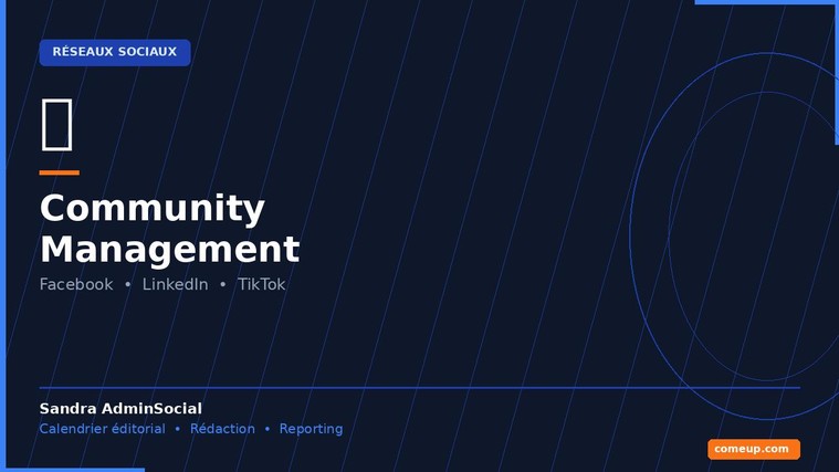 Forte d’une expérience en community management chez bridge Express, je gère vos pages Facebook, LinkedIn et TikTok avec sérieux et régularité.