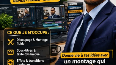 Je suis monteur vidéo et je transforme vos rushs en vidéos modernes, engageantes et prêtes à publier sur toutes les plateformes.