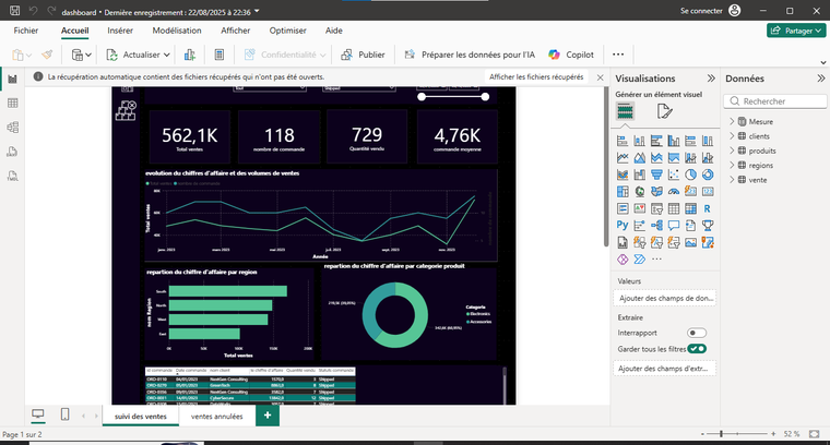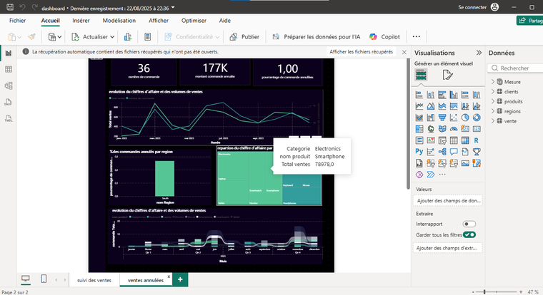 un tableau de bord power bi interactif