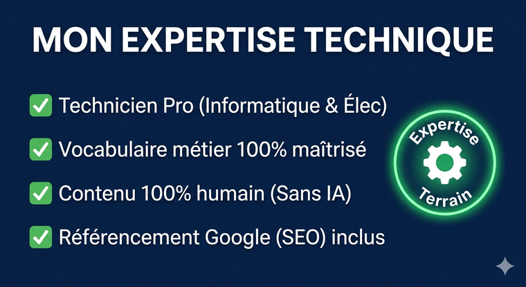 Sur le web, la crédibilité est tout. Un article technique rempli d'erreurs fait fuir vos clients. Mon rôle est de transformer des concepts complexes en textes clairs, précis et professionnels pour votre blog, votre site vitrine ou vos guides pratiques.