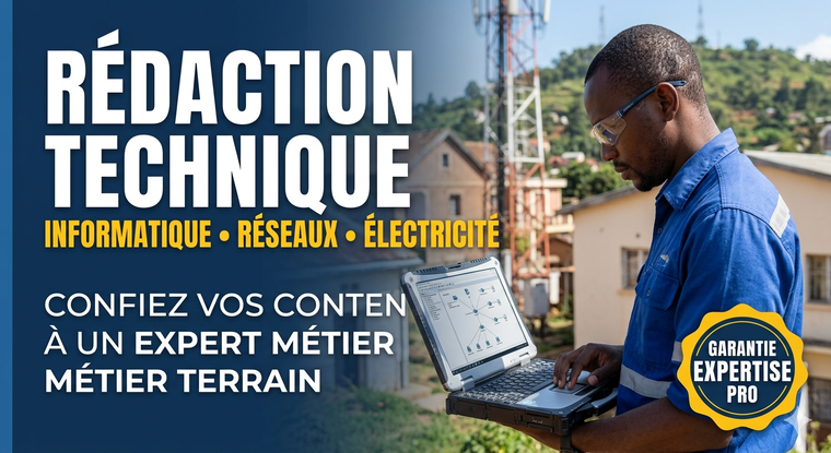 NOM : RATIANARIVO HARINJIVA NARIVONY PROFIL : Technicien Spécialisé (Informatique & Électricité) SERVICE : Rédaction Technique de Haute Qualité Titre du service Je vais rédiger votre article technique (Informatique, Réseau, Électricité) pour 5 € Description détaillée Expertise technique & Plume professionnelle : Votre contenu rédigé par un pro du terrain. Bonjour ! Je m'appelle Harinjiva Narivony. Contrairement aux rédacteurs généralistes, je suis un technicien spécialisé en informatique (Hard/Soft), réseaux, vidéosurveillance et électricité bâtiment. Je ne me contente pas d'écrire des mots : je partage un savoir-faire technique réel. Mon objectif est de fournir à votre audience des articles crédibles, précis et faciles à comprendre. 🛠️ Mes domaines d'expertise : Informatique : Maintenance Hardware, Software, dépannage, guides d'achat. Réseaux & Sécurité : Configuration IP, sécurité informatique, systèmes de vidéosurveillance. Électricité : Normes électriques, installations bâtiment, domotique. ✨ Pourquoi me choisir ? Français avancé : Une syntaxe parfaite et un style professionnel. Précision technique : Utilisation correcte du vocabulaire métier. Langues : Capacité de recherche documentaire en Français, Anglais et Malagasy. 100% Unique : Aucun usage d'IA non contrôlé, chaque article est rédigé manuellement. 📦 Ce que vous recevez pour 5 € : Un article technique de 500 mots. Structuration claire (Titres, sous-titres, listes à puces). Optimisation SEO (mots-clés) incluse. Livraison au format Word ou PDF. Les Options (Pour augmenter vos revenus) Option Expertise + (+10 €) : Rédaction d'un article approfondi de 1000 mots. Option Recherche Technique (+5 €) : Recherche de sources spécialisées et liens de référence. Option Traduction technique (+15 €) : Traduction de l'Anglais vers le Français (Expertise métier). Consignes pour le client