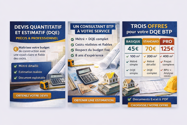 Je vais réaliser votre devis quantitatif et estimatif (DQE) BTP précis et professionnel