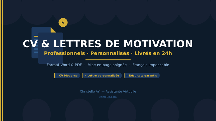 Je crée pour vous un CV moderne et une lettre de motivation personnalisée qui attirent l'attention des recruteurs.