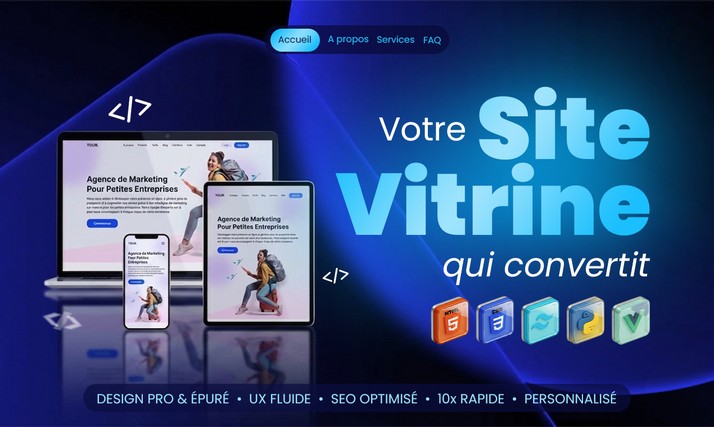 Je développe votre site vitrine ou landing page avec Vue.js et Tailwind CSS — les mêmes technos utilisées par les grandes plateformes. Le résultat : un site qui s'affiche en moins d'1 seconde, avec un design pensé pour guider vos visiteurs vers votre CTA. Pas de template. Pas de plugin inutile. Du code propre, sur-mesure, qui vous appartient.