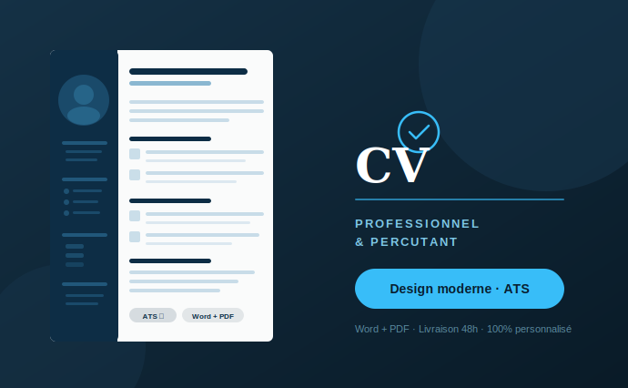 Je vais créer ou réécrire entièrement votre CV pour le rendre clair, professionnel et adapté à votre secteur.
