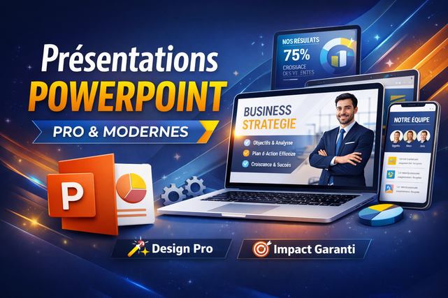 Je transforme ton contenu en PowerPoint clair, esthétique et efficace pour marquer les esprits.