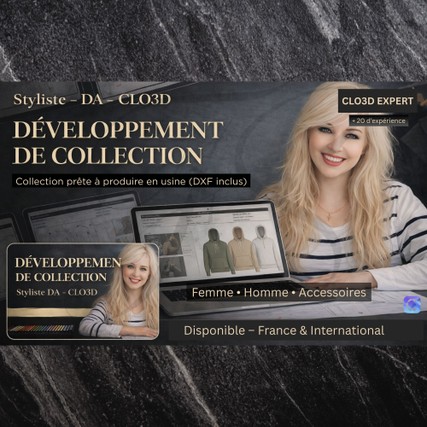 🚀 Je vous aide à créer vos collections Femme, Homme & Accessoires (prêt-à-porter, maroquinerie) plus rapidement, sans erreurs et prêtes à produire grâce à la modélisation 3D CLO3D. Bonjour et bienvenue sur mon profil, Styliste – Modéliste diplômée d'ESMOD Paris, avec plus de 20 ans d’expérience dans le développement produit mode, j’accompagne les marques et entrepreneurs de l’idée jusqu’au prototype prêt à produire. Experte du logiciel CLO3D, je vous propose une approche moderne et efficace du développement de collection grâce à la modélisation 3D : ✔ Création de collection (Homme & Femme) ✔ Modélisation 3D réaliste de vos modèles ✔ Développement produit et optimisation des volumes ✔ Création de patrons prêts à produire ✔ Réalisation de tech packs professionnels ✔ Développement de modèles Femme, Homme & Accessoires (vêtements, sacs, maroquinerie) Grâce à la simulation 3D, vous visualisez vos modèles avant fabrication, réduisez les erreurs et accélérez votre mise en production. Les fichiers peuvent être exportés en format DXF, compatibles avec les systèmes industriels comme Lectra. 👉 Disponible pour collaborations en France et à l’international. 💬 Contactez-moi dès maintenant pour discuter de votre projet et obtenir une première recommandation personnalisée. 🔗 Mon profil LinkedIn (portfolio & parcours complet) : https://www.linkedin.com/in/florenceselaudouxstyliste/ 👉 Tapez “Florence Sélaudoux CLO3D” sur LinkedIn pour me retrouver facilement Fashion Designer & Pattern Maker – CLO3D Expert I help brands and entrepreneurs develop their Women’s, Men’s & Accessories collections (ready-to-wear, leather goods) faster, with fewer errors and ready for production using CLO3D 3D simulation. ✔ Collection development ✔ Realistic 3D modeling ✔ Production-ready patterns (DXF – Lectra compatible) ✔ Professional tech packs 📩 Available for collaborations worldwide