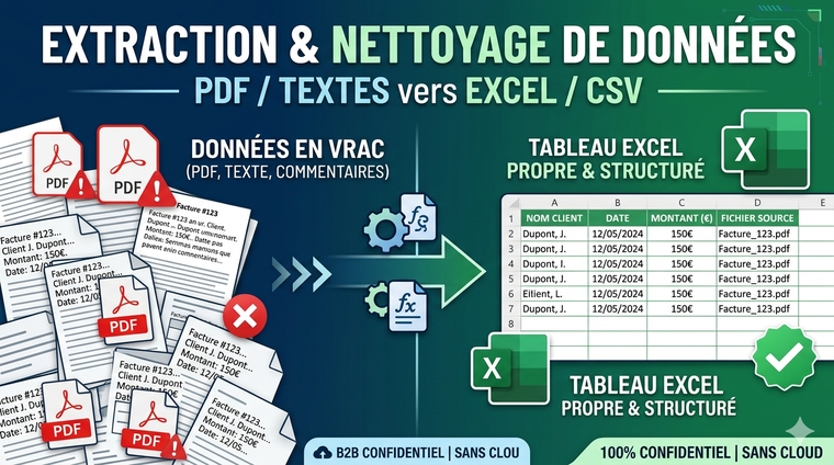Vous disposez de dizaines de factures en PDF, de formulaires ou de textes bruts en vrac ? Vous perdez un temps précieux à tenter de tout copier-coller dans Excel, mais vos données sont trop "sales" ou mal formatées pour être exploitées ?