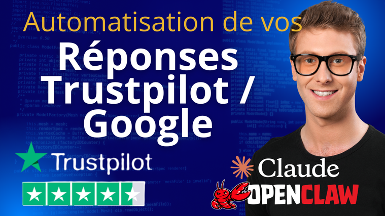 On installe un agent IA Claude qui répond à chaque avis Google, Trustpilot et autre plateforme, instantanément, avec le ton de ta marque. En 48h. Pour 29,38 $US.