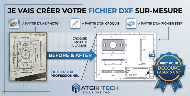 Je vais créer votre fichier DXF sur-mesure à partir d'une photo, d'un croquis ou d un fichier step