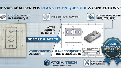 Je vais créer vos fichiers DXF et vos mises en plan professionnelles. Vous recevrez un pack complet comprenant : Le fichier DXF à l'échelle 1:1 (prêt pour la découpe). Le fichier STEP (3D) pour vos intégrations. Un plan PDF détaillé avec cotations et vue 3D pour validation.