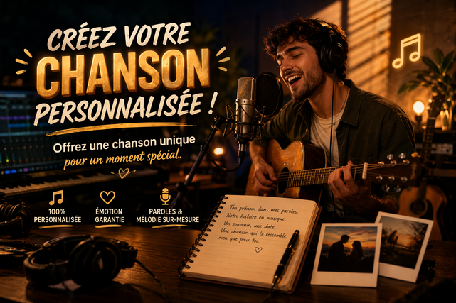 Tu veux offrir un cadeau unique, marquer un moment spécial ou transformer une histoire en musique ? Je crée pour toi une chanson 100% personnalisée, adaptée à ton histoire, ton style et ton émotion. 💡 Que ce soit pour : • Anniversaire • Déclaration d’amour • Mariage / demande en mariage • Hommage • Ou juste pour le plaisir 🎶 Je m’occupe de tout : écriture des paroles, ambiance, style musical… pour un rendu authentique, touchant et professionnel. 👉 Tu as déjà un texte ? Parfait ! Tu peux me l’envoyer, et je peux : ✔️ L’améliorer ✔️ Le restructurer ✔️ Le transformer en vraie chanson 🎧 Chaque commande est : ✔️ Unique (créée spécialement pour toi) ✔️ Personnalisée selon ton histoire ✔️ Adaptée au style que tu veux (love, motivation, festif, etc.) 📩 Pour commencer, envoie-moi : • Le prénom / les infos importantes • Ton histoire ou ton message • Le style souhaité • (Optionnel) Ton texte si tu en as un 🚀 Idéal pour surprendre, émouvoir et marquer les esprits !