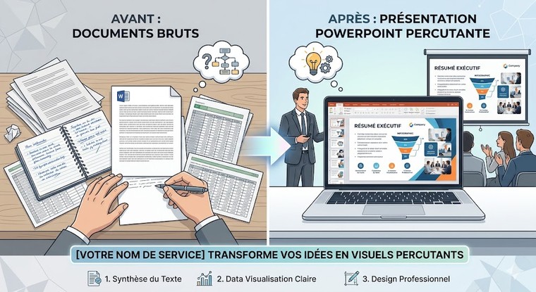Le concept : vous me donnez un PowerPoint déjà fait mais brouillon.