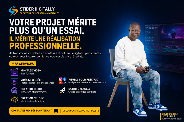 Vous voulez attirer + vendre + exploser votre business en ligne ? Bienvenue chez Stider Digital 🎯 🛑✅ Entrepreneur & Spécialiste des réseaux sociaux. 🛑✅ Expert Facebook,Instagram,Tiktok,WhatsApp & YouTube… 🛑✅ Expert Meta Ads / Google Ads & Tiktok Ads … 🛑✅ Expert en certification 👉👉 Facebook | Instagram | Tiktok | WhatsApp & YouTube… NB: 👆👆👆 Les Certifications Peuvent être Par 👉 ( Abonnement ) ✅👉👉 Pour quelques Mois ou Années. Soit par 👉 ( Ordinaire ) ✅ 👉👉 à vie… ( En seulement 48h ). Je transforme les entreprises de 0 à 1000+ ventes/jour grâce à des stratégies digitales puissantes : ✔️ Création de logos professionnels (identité forte & mémorable) ✔️ Montage vidéo viral (TikTok, Facebook, YouTube) ✔️ Campagne publicitaire ultra professionnelle. ✔️ Miniatures YouTube qui attirent des milliers de clics ✔️ Textes & descriptions qui vendent automatiquement ✔️ Optimisation de votre image de marque pour plus de clients & plus d’argent 🚀 Mon objectif : faire passer votre business au niveau supérieur 📈 Plus de visibilité – Plus d’engagement – Plus de ventes 👉 Travail rapide | Qualité premium | Résultats visibles Contactez-moi maintenant et transformez votre business 🔥