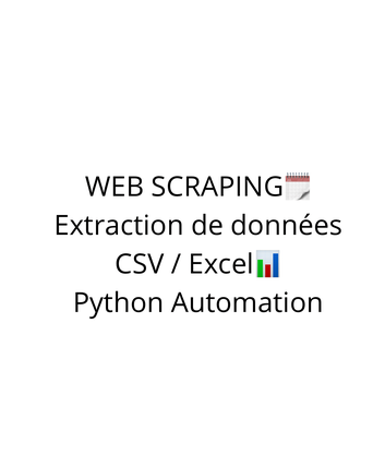 Je suis développeur Python spécialisé en scraping web, extraction de données et automatisation de tâches. Je peux : • Scraper les titres, headings, liens, et informations publiques • Générer des fichiers CSV/Excel propres • Automatiser des processus avec Python Travail rapide, propre et professionnel. English I’m a Python developer specializing in web scraping, data extraction and automation. I can scrape website data (titles, headings, links, product info) and deliver it in CSV/Excel format. Fast delivery, clean results, and professional communication.