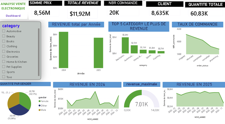nettoyage et préparation des données (Excel, CSV, SQL), traitement et analyse avec Python (Pandas), ainsi que la création de visualisations claires et pertinentes. Je conçois également des tableaux de bord interactifs sous Power BI ou Excel afin de vous permettre de suivre vos indicateurs clés (KPI) .