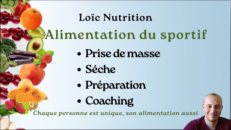 La nutrition, votre alliée à chaque étape de la vie "Optimiser vos performances sportives, assurer la croissance de vos enfants ou harmoniser votre équilibre féminin : et si tout commençait dans votre assiette ?" Bonjour ! Je suis Loïc, titulaire d'une formation certifiante reconnue. Mon parcours me permet de vous proposer un accompagnement rigoureux, basé sur des protocoles nutritionnels validés, tout en restant à l'écoute de vos besoins réels. Spécialisé dans l'accompagnement des sportifs, des familles et des femmes. Mon objectif est simple : vous offrir des solutions nutritionnelles concrètes, basées sur la science, pour transformer votre quotidien sans jamais sacrifier le plaisir. Performance Sportive : Dépassez vos limites Que vous soyez athlète amateur ou compétiteur, l'alimentation est votre premier carburant. Je vous aide à : Optimiser la récupération musculaire et réduire le risque de blessure. Gérer votre poids de forme (sèche, prise de masse, préparation à une course). Maîtriser votre énergie avant, pendant et après l'effort. Nutrition de l’Enfance : Le socle de la croissance Parce que les bonnes habitudes se prennent tôt, j'accompagne les parents pour : Équilibrer les assiettes des petits et des grands (diversification, croissance). Instaurer des bases saines dès le plus jeune âge . Réduire le sucre : des alternatives gourmandes et saines pour le goûter. Nutrition au Féminin : Équilibre & Hormones Le corps de la femme a des besoins uniques. Je vous propose un accompagnement ciblé pour : Réguler le cycle hormonal (syndrome prémenstruel, SOPK, endométriose). Accompagner la maternité (pré-conception, grossesse, post-partum). Vivre sereinement la ménopause grâce à une alimentation adaptée. Pourquoi travailler avec moi ? Approche Personnalisée : Pas de plan "copier-coller". Chaque programme est unique. Pédagogie : Je ne vous donne pas juste un menu, je vous apprends à comprendre vos besoins. Disponibilité : Un suivi réactif via la messagerie ComeUp pour répondre à vos doutes.