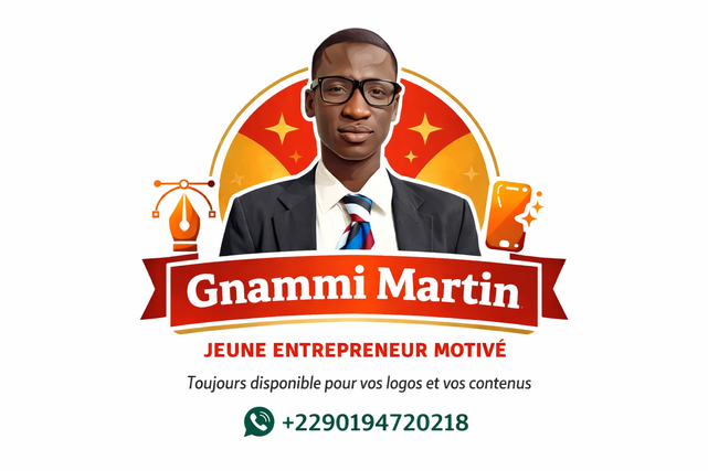 Je m'appelle Gnammi Martin, entrepreneur spécialisé dans la création de contenus digitaux. 🎯 J’aide les entrepreneurs, commerçants et marques à attirer plus de clients et vendre plus grâce à des visuels modernes et impactants. 🔥 Mes services : ✔ Création de visuels publicitaires (WhatsApp, Facebook, Instagram) ✔ Création de logos professionnels ✔ Design d’ebooks et documents digitaux ✔ Création de contenus marketing 💡 Pourquoi me choisir ? ✅ Travail rapide et professionnel ✅ Créativité et designs modernes ✅ Disponible et à l’écoute ✅ Satisfaction client prioritaire 📲 Contact WhatsApp : +2290194720218 🚀 Prêt à booster ton business ? Contacte-moi maintenant !