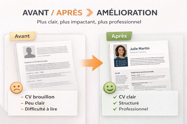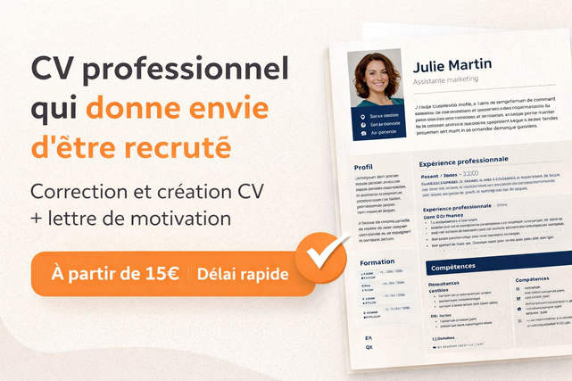 Je vous propose de créer ou d’améliorer votre CV et votre lettre de motivation afin de mettre en valeur votre profil et augmenter vos chances de décrocher un emploi.