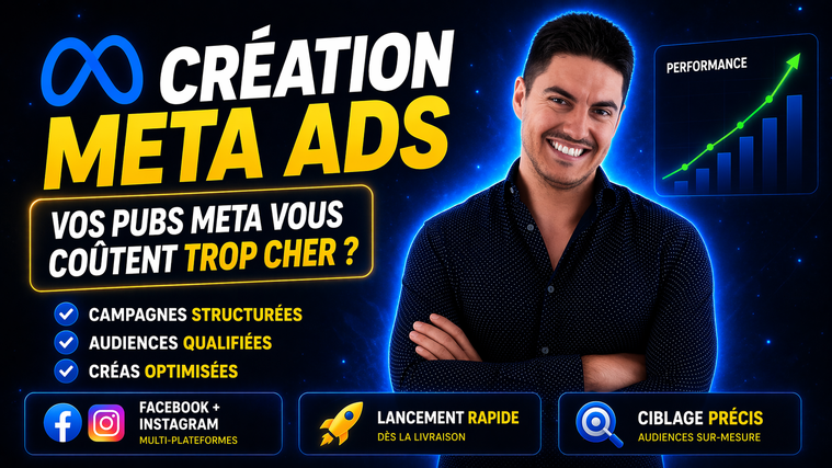Cette prestation, c'est un setup Meta Ads complet — Facebook + Instagram — propre, structuré et prêt à scaler. Conçu pour convertir dès le premier euro dépensé.
