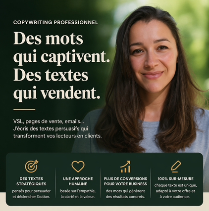 Rédactrice, Copywriter et Spécialiste du marketing par email 👉 Vos emails pourraient représenter jusqu’à 30 % de vos ventes. Encore faut-il qu’ils soient ouverts, lus… et qu’ils donnent envie d’acheter. C’est exactement là que j’interviens. Je suis copywriter freelance spécialisée en email marketing, et je vous aide à transformer vos idées en emails clairs, puissants et irrésistibles. Pourquoi me lire jusqu’au bout ? Parce que l’email n’est pas “mort”. Mal exploité, oui. Mais avec la bonne stratégie, c’est l’un des leviers les plus rentables et durables pour créer une vraie relation avec vos clients. Ce que je fais concrètement • Rédaction stratégique de séquences email & newsletters • Création de messages authentiques, alignés avec votre vision et vos valeurs • Optimisation des textes pour augmenter l’engagement et les conversions • **Approche centrée sur votre audience **: je parle à vos clients, pas à tout le monde Chaque email a un objectif précis : 👉 créer du lien 👉 renforcer la confiance 👉 déclencher l’action Les résultats pour vous: Des emails qui ne se contentent pas d’être envoyés. Ils sont ouverts, lus… et transforment vos lecteurs en clients fidèles. En tant que stratège en email marketing, je ne me contente pas d’écrire. Je transforme votre communication en un système performant. Vous voulez voir comment?
