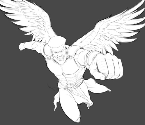 Esquisse (Rough) : Je vous propose une ébauche de composition pour valider le cadrage et les idées.