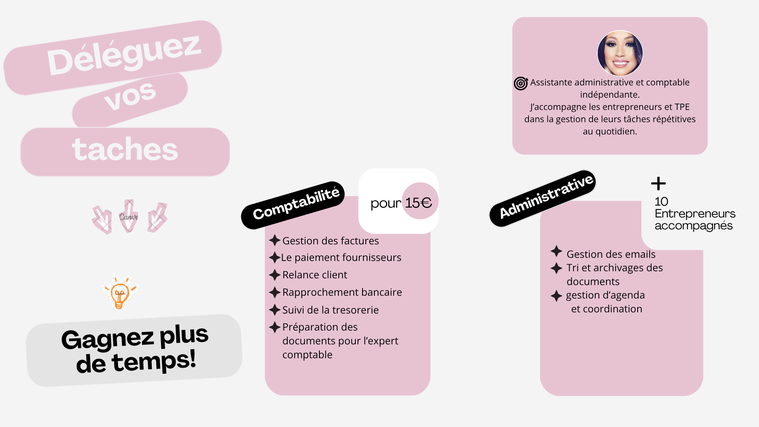 J’accompagne les entrepreneurs, TPE dans leur gestion quotidienne, avec un objectif simple : vous faire gagner du temps!