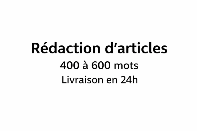 Je vous propose la rédaction de vos articles, contenus web ou textes professionnels avec sérieux et réactivité.