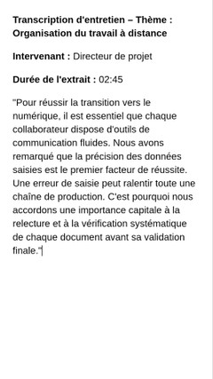 La transcription intégrale d'un fichier allant jusqu'à 30 minutes.