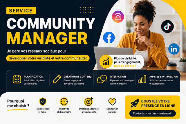 Je vous propose un service de community management complet et efficace pour développer votre audience et engager votre communauté.