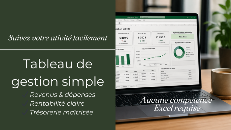 Je vous propose un tableau de gestion clair et facile à utiliser pour piloter votre activité au quotidien.