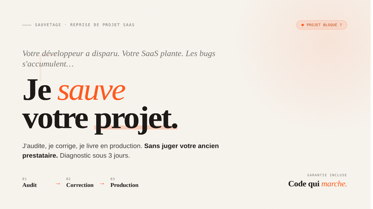 Je vais sauver votre projet SaaS bloqué : audit, correction, mise en prod