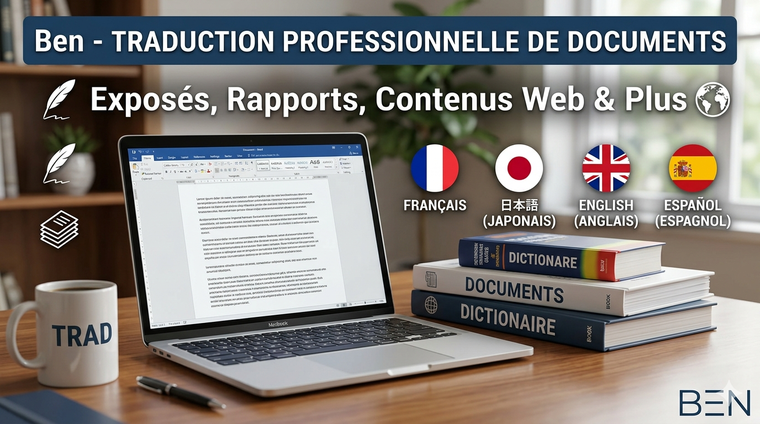 Je m'appelle Ben et je vous propose une traduction humaine, fluide et adaptée à votre public cible. Ma priorité est de respecter la structure de votre texte original tout en garantissant une lecture naturelle.