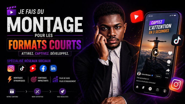 Je suis monteur vidéo, créatif et exigeant sur le détail. Mon métier : aider les marques, créateurs et entreprises à transformer des séquences brutes en récits visuels attrayants, fluides et percutants. Ce que je maîtrise le mieux : Le montage professionnel (rythme, coupes, transitions) La correction des couleurs et l’étalonnage Le montage destiné au réseaux sociaux formats longs et courts verticaux