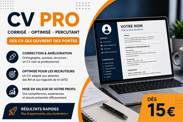 Je vous propose un service de correction et d’optimisation de vos documents professionnels adapté aux attentes des recruteurs.