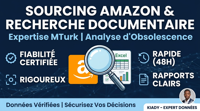 Vous recherchez un prestataire capable de naviguer avec agilité dans les bases de données complexes et les catalogues e-commerce ? Fort d'une expérience solide en tant qu'opérateur online, j'ai développé une méthodologie rigoureuse pour l'extraction de données et l'analyse de produits, notamment via des plateformes d'exigence comme Amazon et Amazon Mechanical Turk (MTurk).