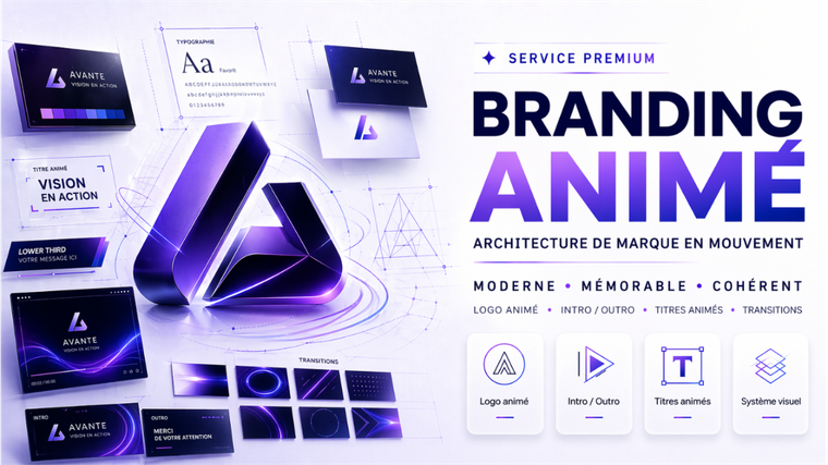 Je crée un branding animé premium pour transformer votre identité visuelle en un univers plus vivant, plus cohérent et plus impactant.