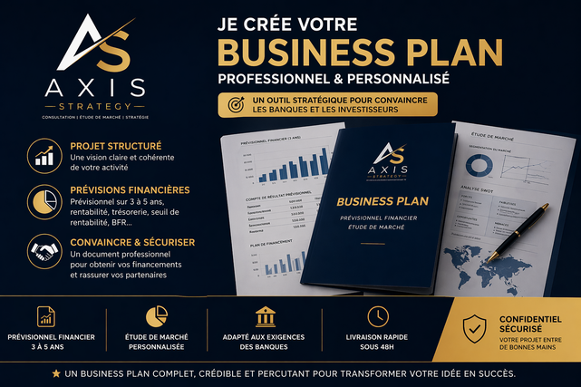 Chaque business plan est personnalisé, structuré et basé sur des données de marché actualisées, afin de maximiser votre crédibilité et vos chances de succès.